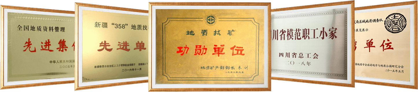 60余年来所提交的基础地质资料,得到社会各领域广泛应用,获得“大庆式企业”“地质找矿功勋单位”“四川省五一劳动奖状”“全国五四红旗团支部”“四川省工人先锋号”“四川省省级机关文明单位”“新疆358找矿先进单位”等荣誉称号。
