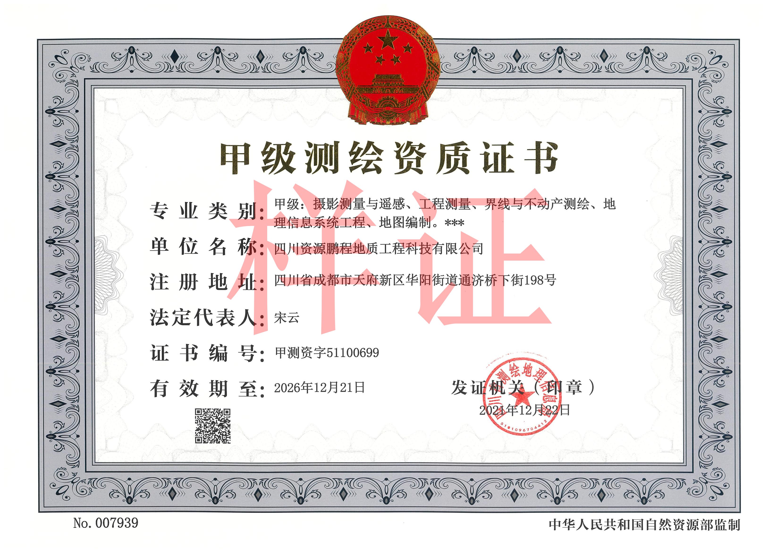 甲级测绘资质证书(四川资源鹏程地质工程科技有限公司)