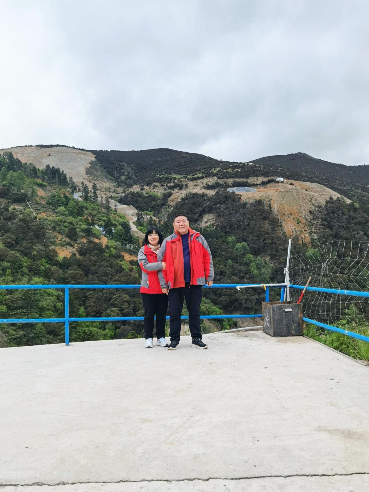 下午4点,检查组与矿山和项目组成员召开座谈会。此时,我的爱人也因工作原因到达矿山。我们匆匆合了个影,他上山继续工作,我下山奔赴下一站。
