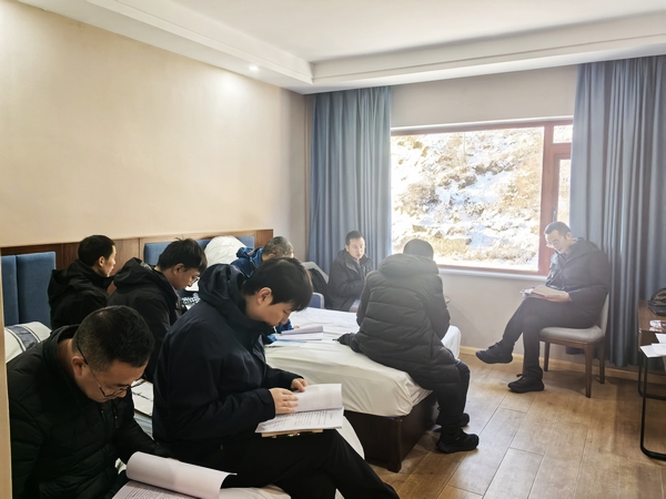28日,专家组通过听取项目汇报,对项目组实物工作量完成情况、质量监控、安全管理等方面进行详细了解,并对勘查区控制点建标、样品制备等工作进行了野外现场实地检查。