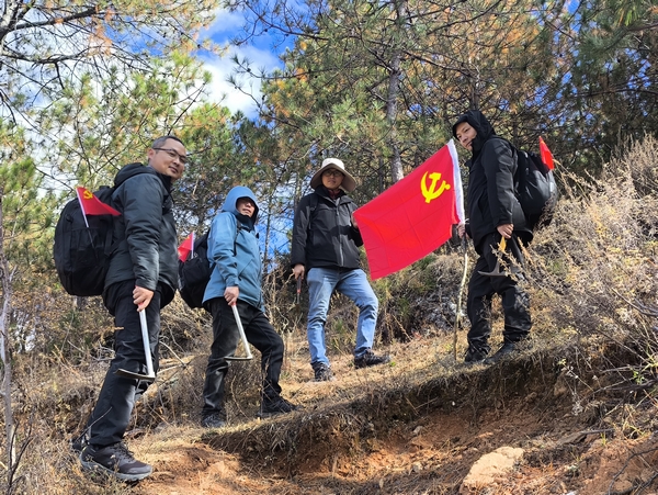 十二月的木里虽阳光明媚,依然掩盖不住冬季的寒冷。区调所项目组不惧寒意,加快地质找矿速度,充分利用冰雪封山的空窗期,组建一支由党员同志带头的找矿先锋队,毅然奔赴海拔4000米的目标工作区,开展调查工作。在野外地质调查过程中,党员同志充分发挥先锋模范作用,勇挑重担,砥砺前行,没有民工帮忙,采集的样品就自己背,车不能到,就双腿步行,路不通,就穿荆棘爬陡坎。在党员同志带领下,项目组成员齐心协力,克服重重困难,找矿工作顺利推进,发现的矿化点为下一步工作奠定了坚实基础,对木里县金矿调查与开发提供了有力依据和参考。
