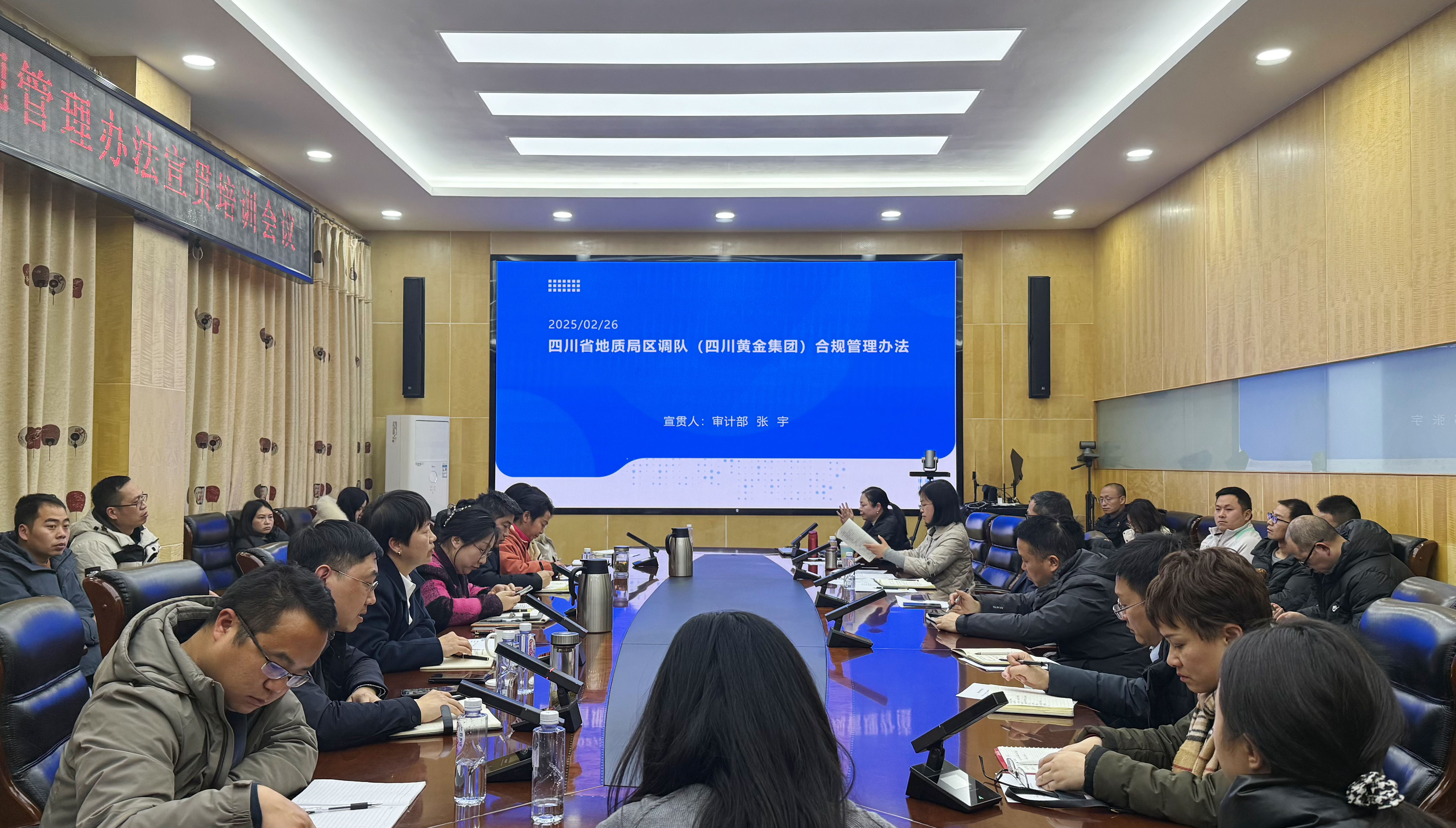 2月27日,区调队(四川黄金集团)举办合规管理办法宣贯培训会,队党委委员、纪委书记、工会主席杨华出席并讲话。