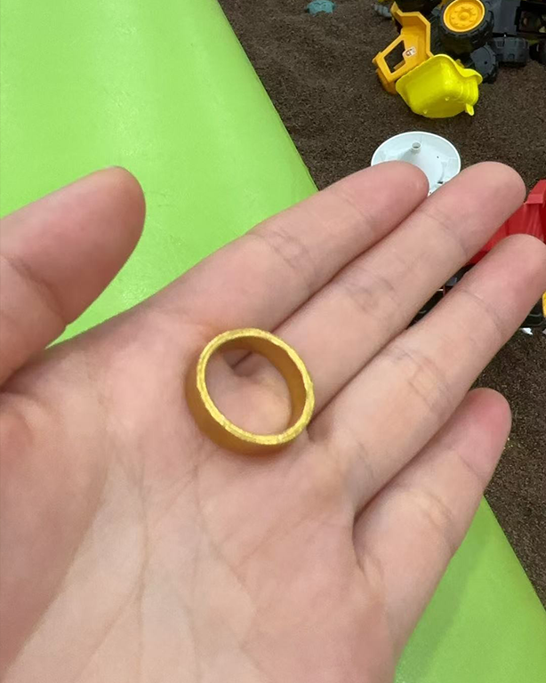 “妈妈快看!沙子里有星星!”儿子瑞瑞突然举起沾满沙粒的小手,掌心托着一枚闪着微光的金色圆环。李秋蓉蹲下身,发现这是一枚非常厚实的黄金戒指。游乐场的欢闹声忽然变得遥远,她仿佛看见失主正焦急地搜寻、翻找。