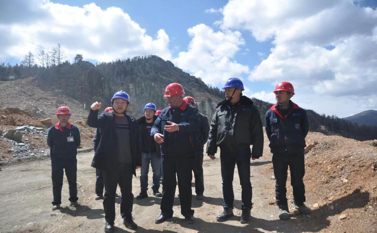区调队队长杨学军(前排左一)在梭罗沟金矿矿山检查指导工作