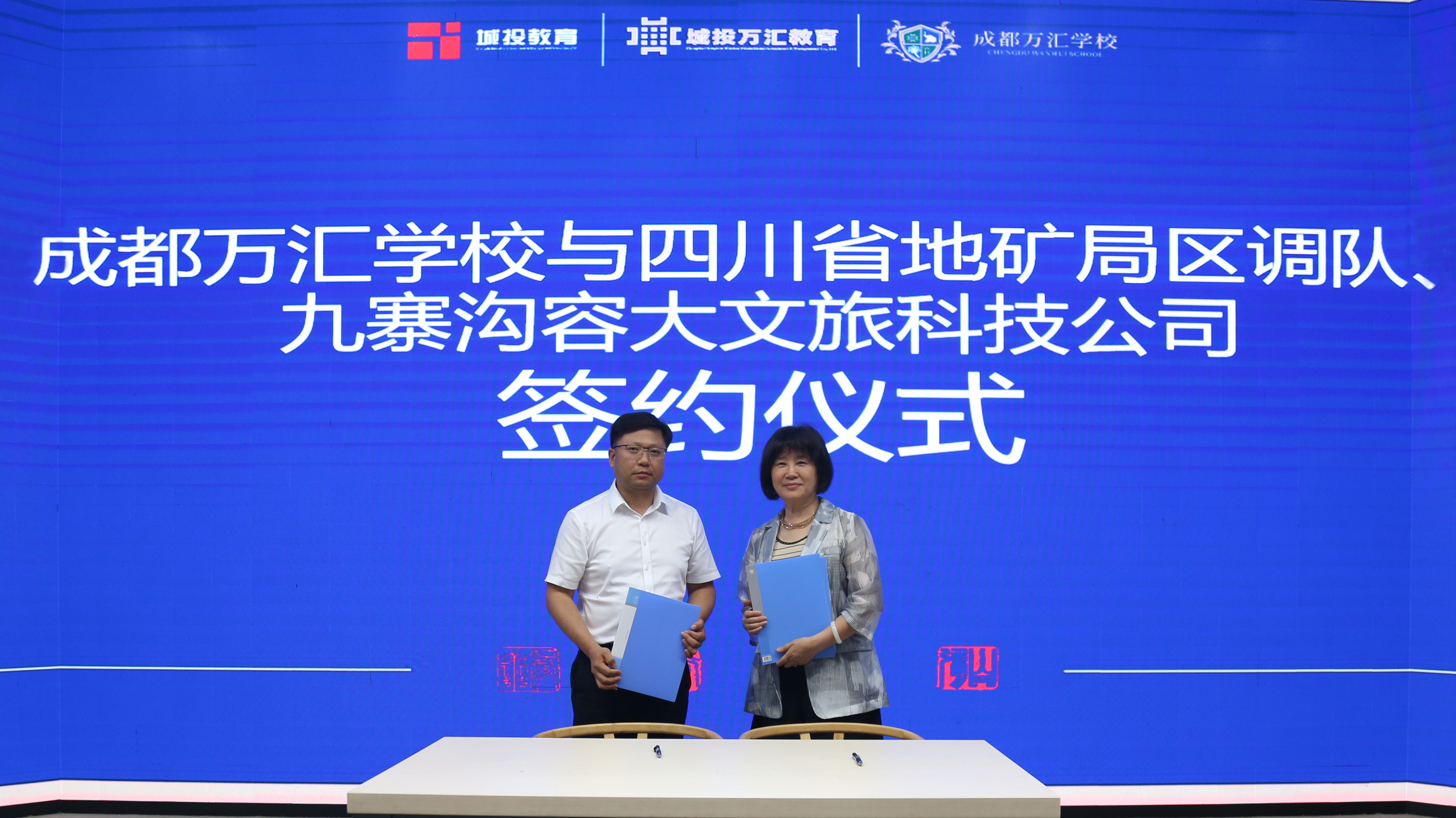 四川省地矿局区调队党委书记张宏、局环工处副处长马旭、成华区教育局德育科科长曹建全、成都万汇学校校长刘晓燕、执行校长张良、副校长杨毅及区调队科创中心李振江、九寨沟县容大文旅科技公司吴小娟及相关人员出席签约仪式。