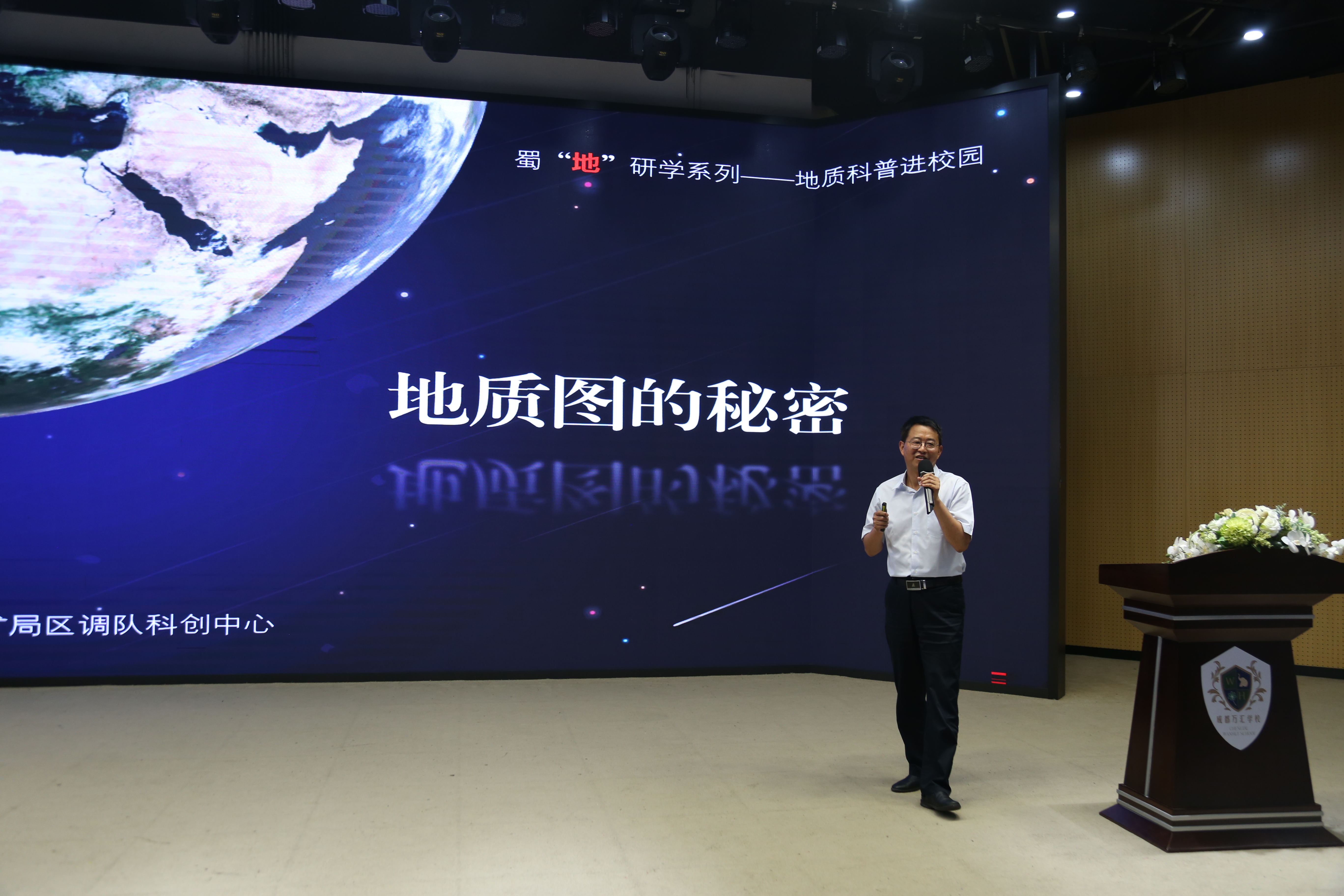 签约仪式结束后,中国地质调查局首批“图幅地质填图科学家”、区调队科创中心主任李振江还给现场的小朋友们,带来一场题为“地质图的秘密”的地质科学讲座。李振江以近期几次地震为切入口,向孩子们科普地质工作的具体内容、地质科学家们的勘探现场以及地质图的相关知识,并利用VR技术介绍了四川地质地貌、地质构造演化、四川人类起源等方面的知识。科普讲座激发了孩子们对地质科学的兴趣,让孩子们感受到了地质科学的神秘。