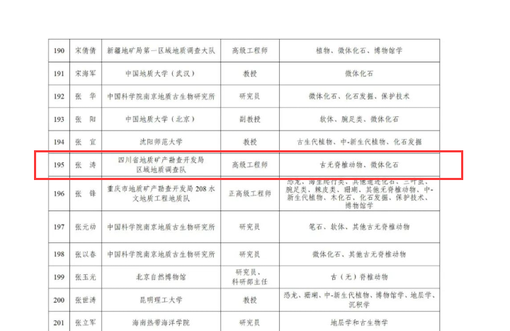 恭贺!区调队张涛入选《国家古生物化石专家库专家名单》