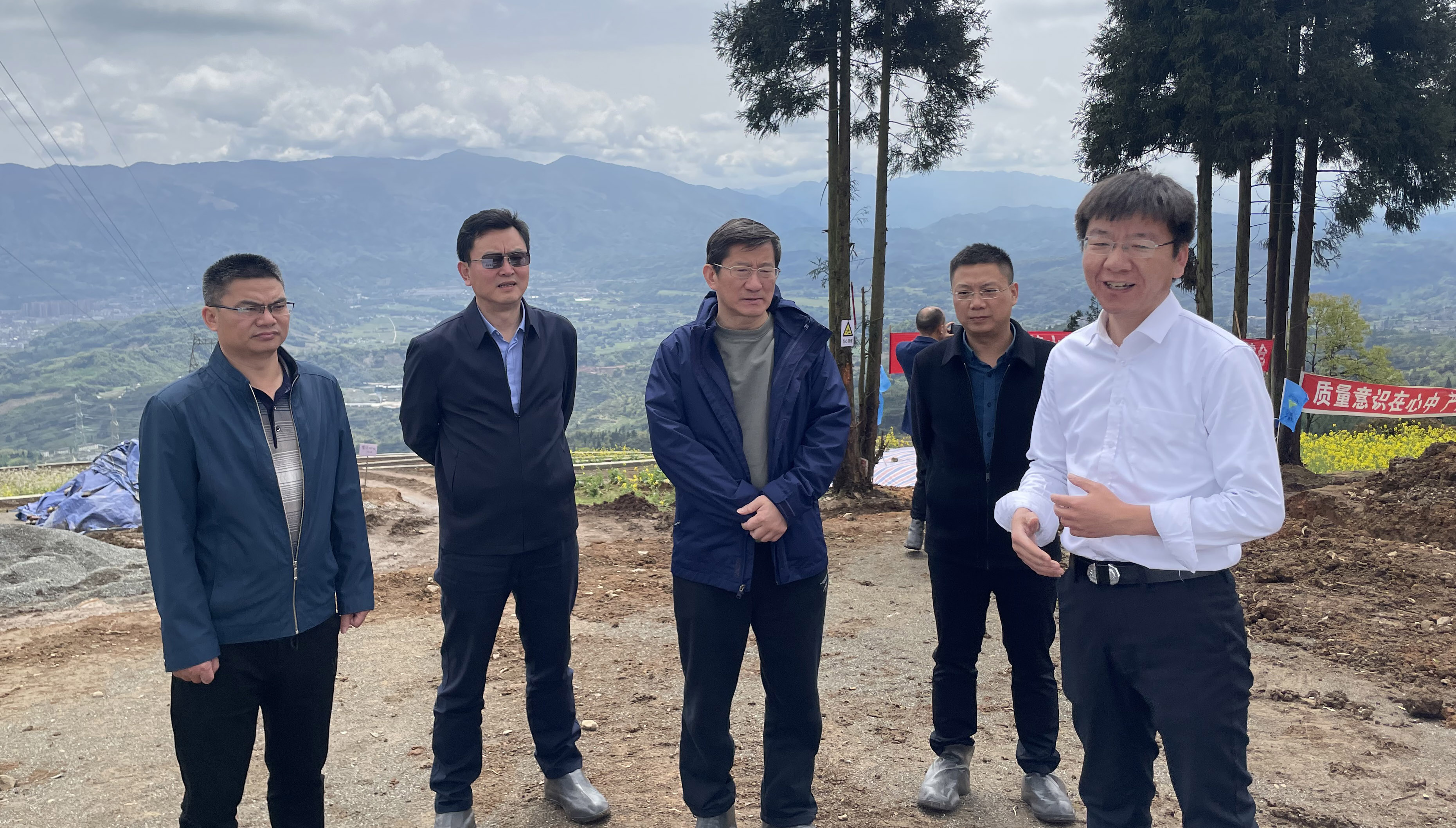 四川省自然资源投资集团党委委员、职工董事、工会主席杜春茂(左三)带队实地检查项目工作
