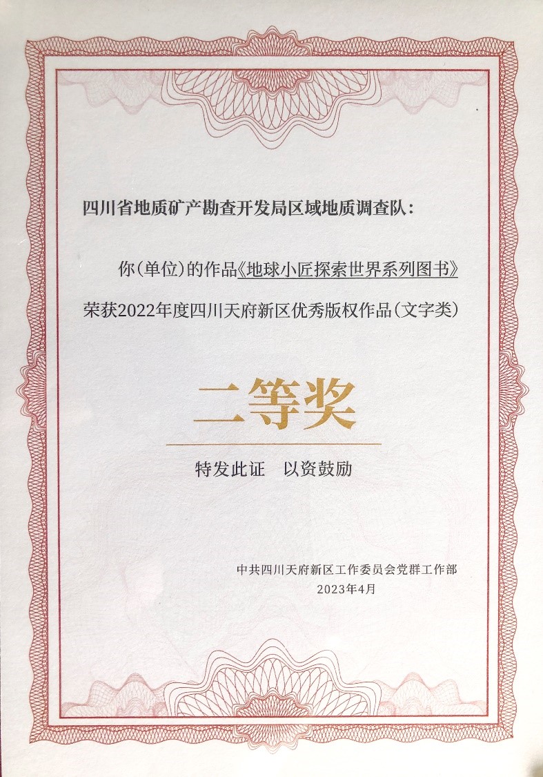 近日,中共四川天府新区工作委员会党群工作部发布《四川天府新区工作委员会党群工作部关于公布2022年度四川天府新区优秀版权作品名单的通知》,在数万件成都市完成版权登记的作品中,由区调队容大九州公司编著的《地球小匠探索世界系列图书》经层层筛选、专家评审、社会公示,最终脱颖而出,荣获文字类作品二等奖,成为该作品类别中唯一获奖的作品。