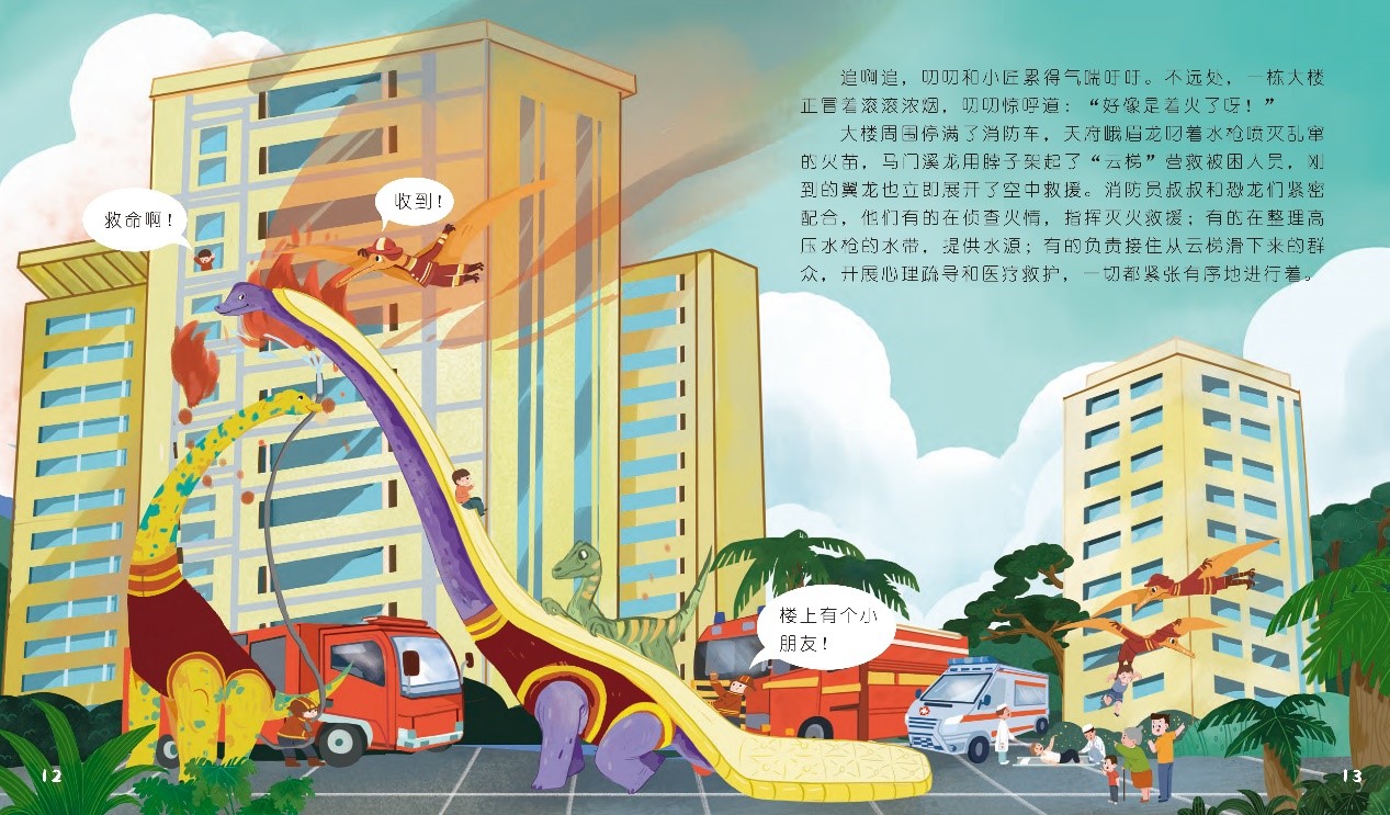 假如恐龙生活在现在插页——马门溪龙借助长长的脖子协助救援