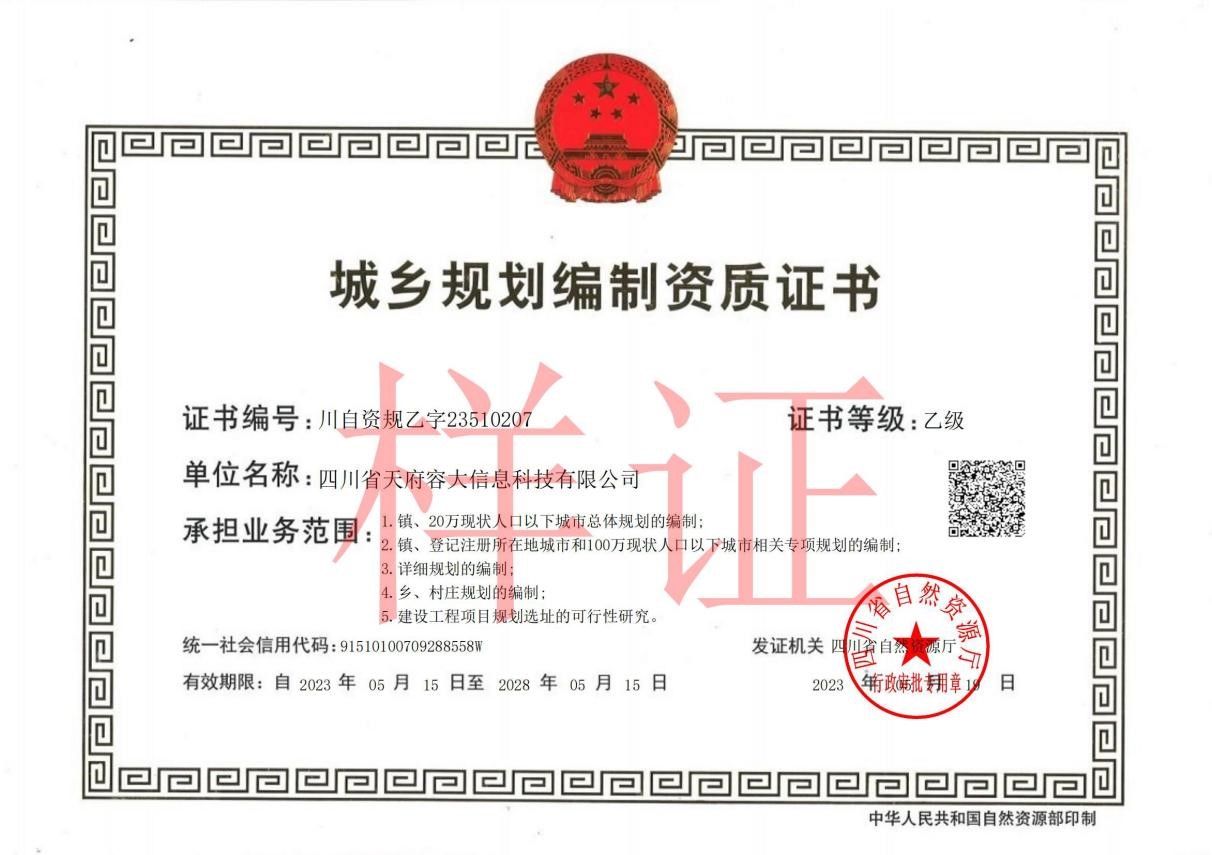 近日,经四川省自然资源厅审批,区调队(容大矿业集团)下属企业——四川省天府容大信息科技有限公司获准取得城乡规划编制资质(乙级)。据了解,此前该资质经历3年暂停核发,于2022年7月才重新开启审批核发工作。容大科技公司经过大半年筹备和努力,终于成功申办该资质,大大拓展了区调队可持证经营业务范围,为全队的发展建设起到了极大推动作用。