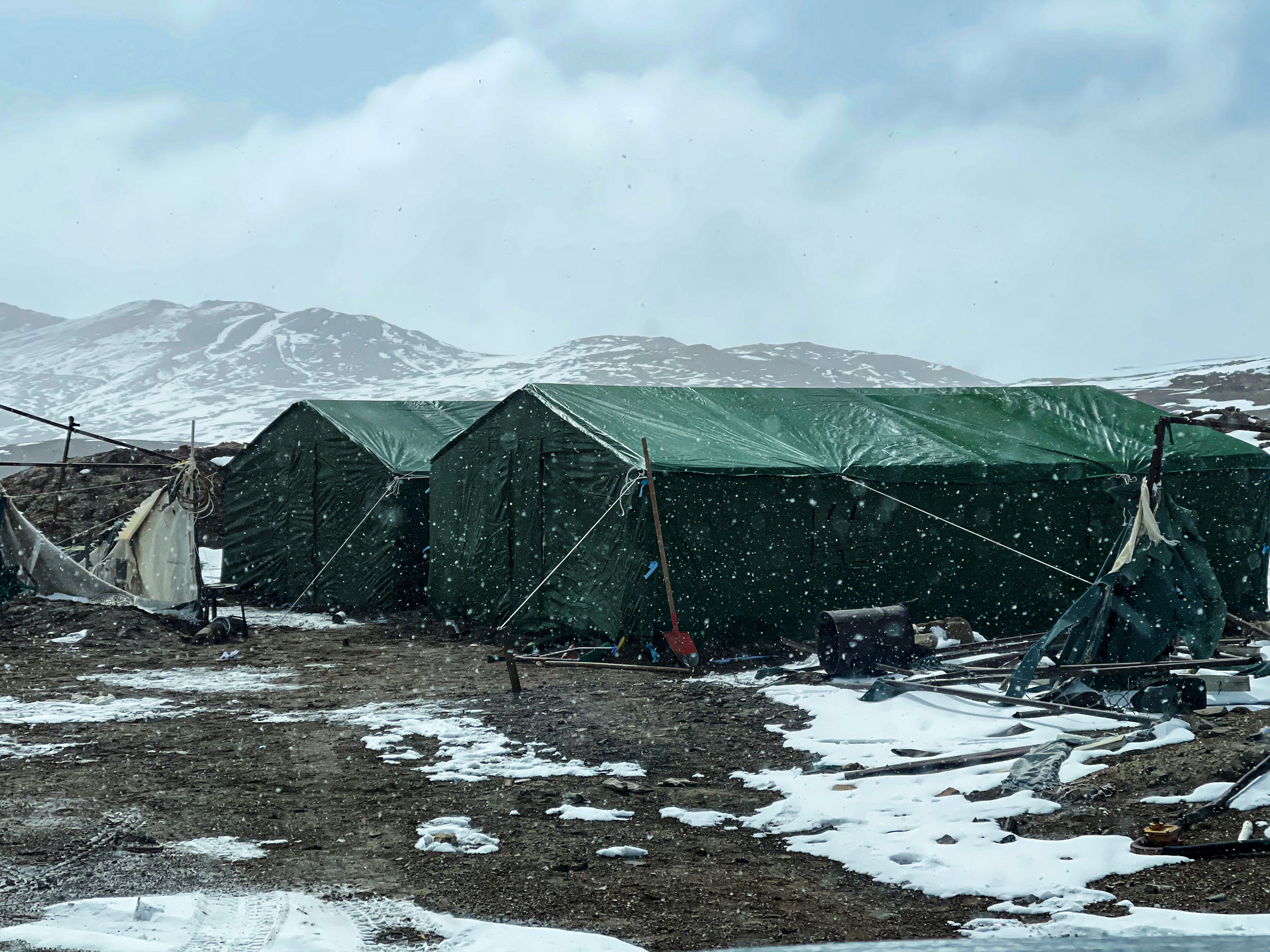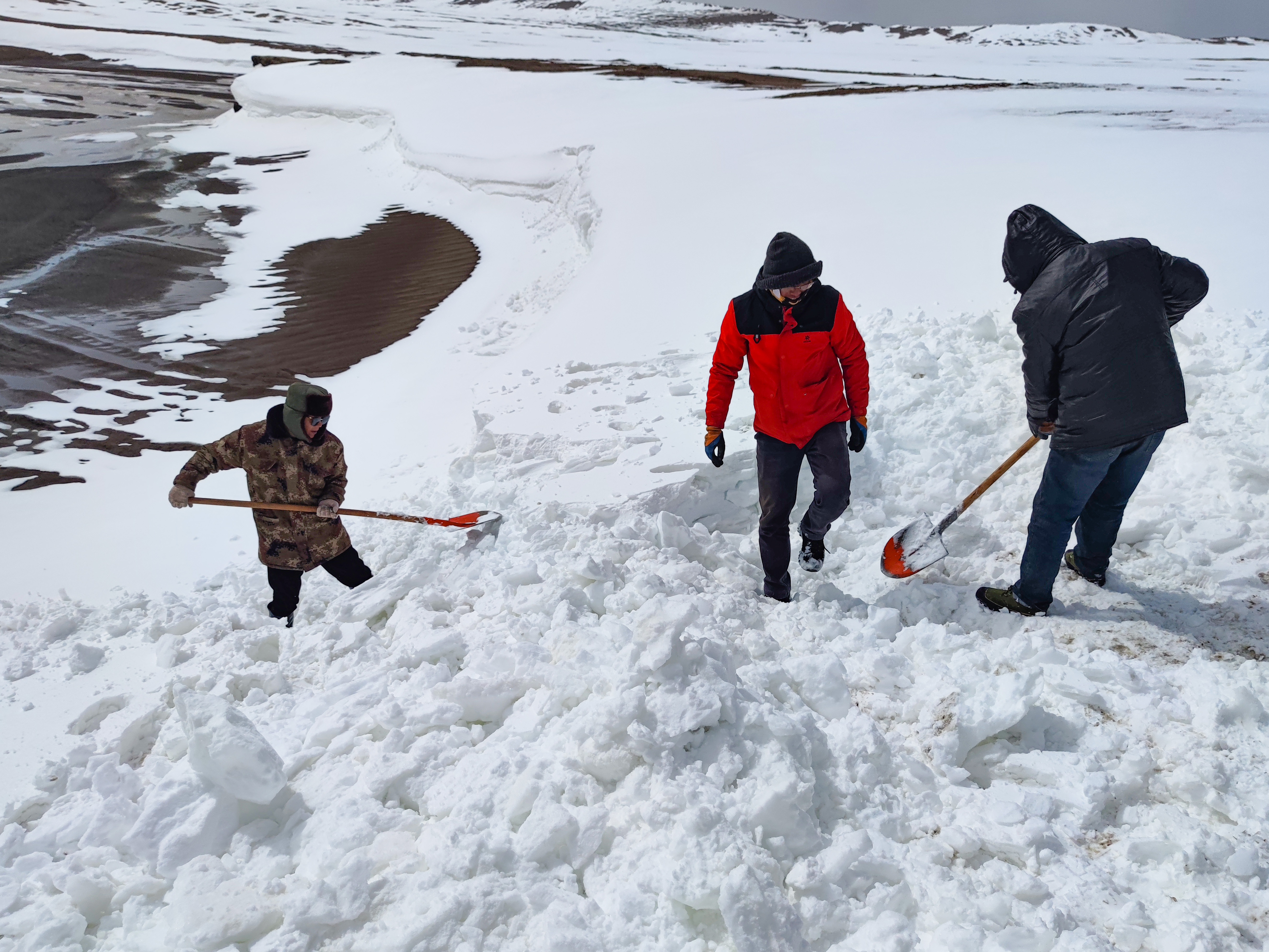 区调队矿勘院的小伙子们正在体验这种两极分化的极端天气:大部分时间在项目现场住帐篷开展地质工作,定时去县城采购生活物资,来来往往感受从冬到夏又自夏入冬,奏响了属于地质人的“冰与火之歌”。