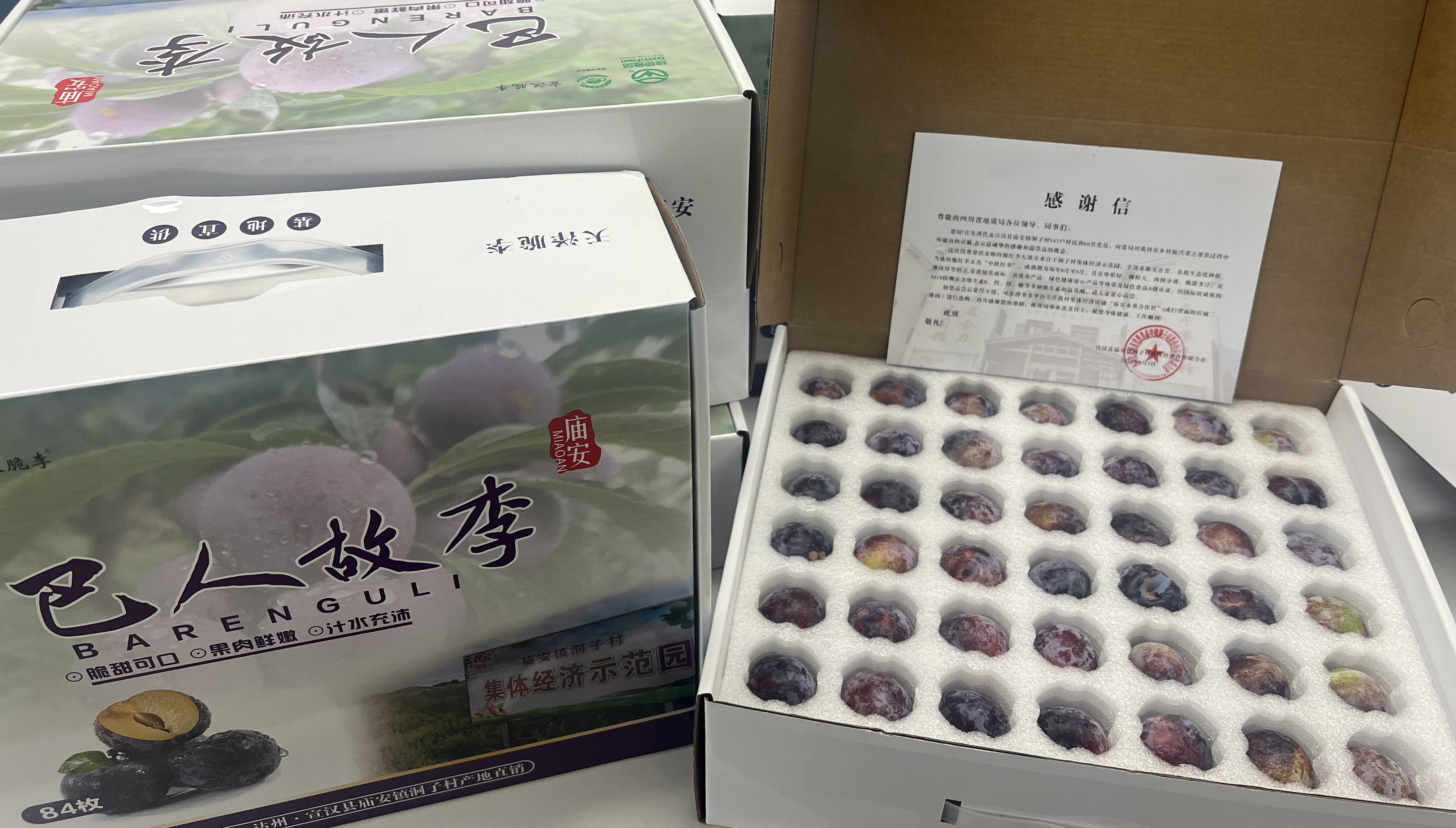 宣汉县庙安镇洞子村,是四川省地质局乡村振兴重点帮扶对象。而这些有着“中秋红李”美称的脆红李,正是来自洞子村集体经济示范园。一盒盒包装精美的李子在工作人员指挥和搬运下,很快分发完成。打开包装盒,一封承载着洞子村村民诚挚谢意的感谢信安静地躺在那里;一颗颗带着紫红色光泽、大小匀称的脆红李整整齐齐嵌在泡沫隔里,一口下去,皮薄肉厚、脆甜多汁,无论从包装还是农产品本身,都能让人体会到生产者的用心。