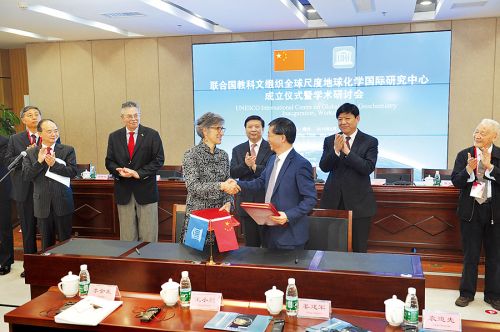 中国政府和联合国教科文组织代表签署全球尺度地球化学国际研究中心协定现场。任 伟 摄