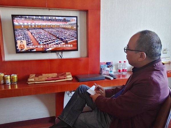 区调队工勘院组织职工收看十九大开幕会盛况(摄影 刘涛)