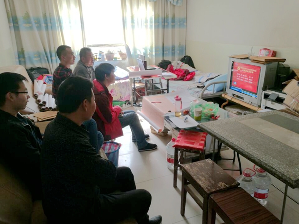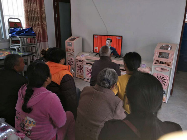 区调队扶贫帮扶干部第一书记王学通组织本村村民收看十九大开幕会(摄影 王学通)