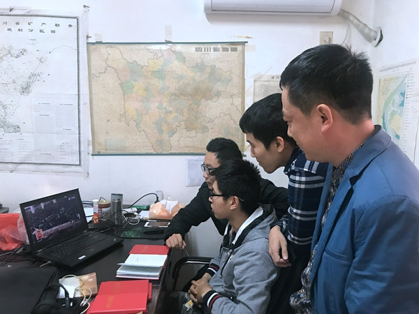 水工环院职工在野外收看十九大开幕会(摄影 宋忠友)