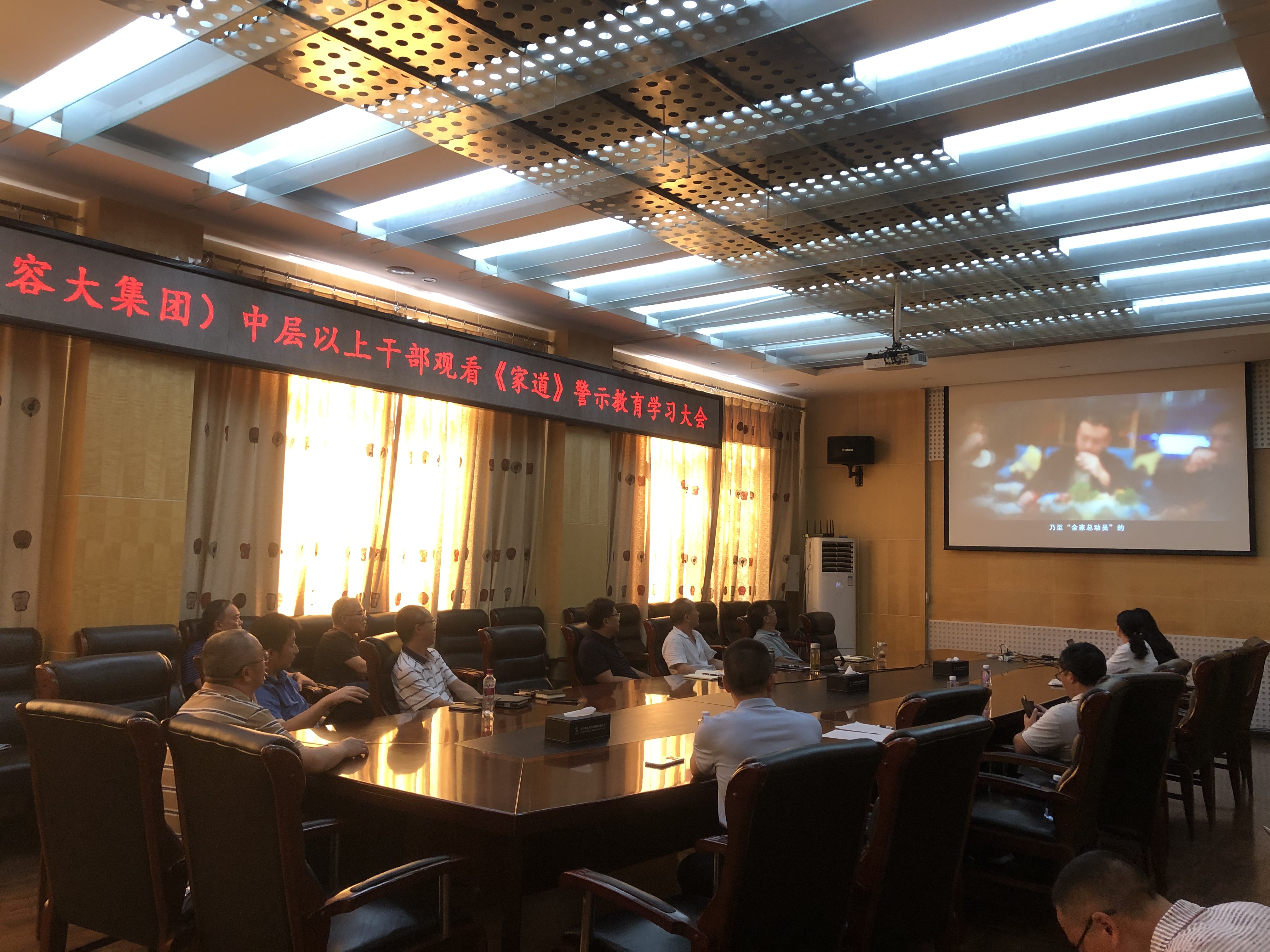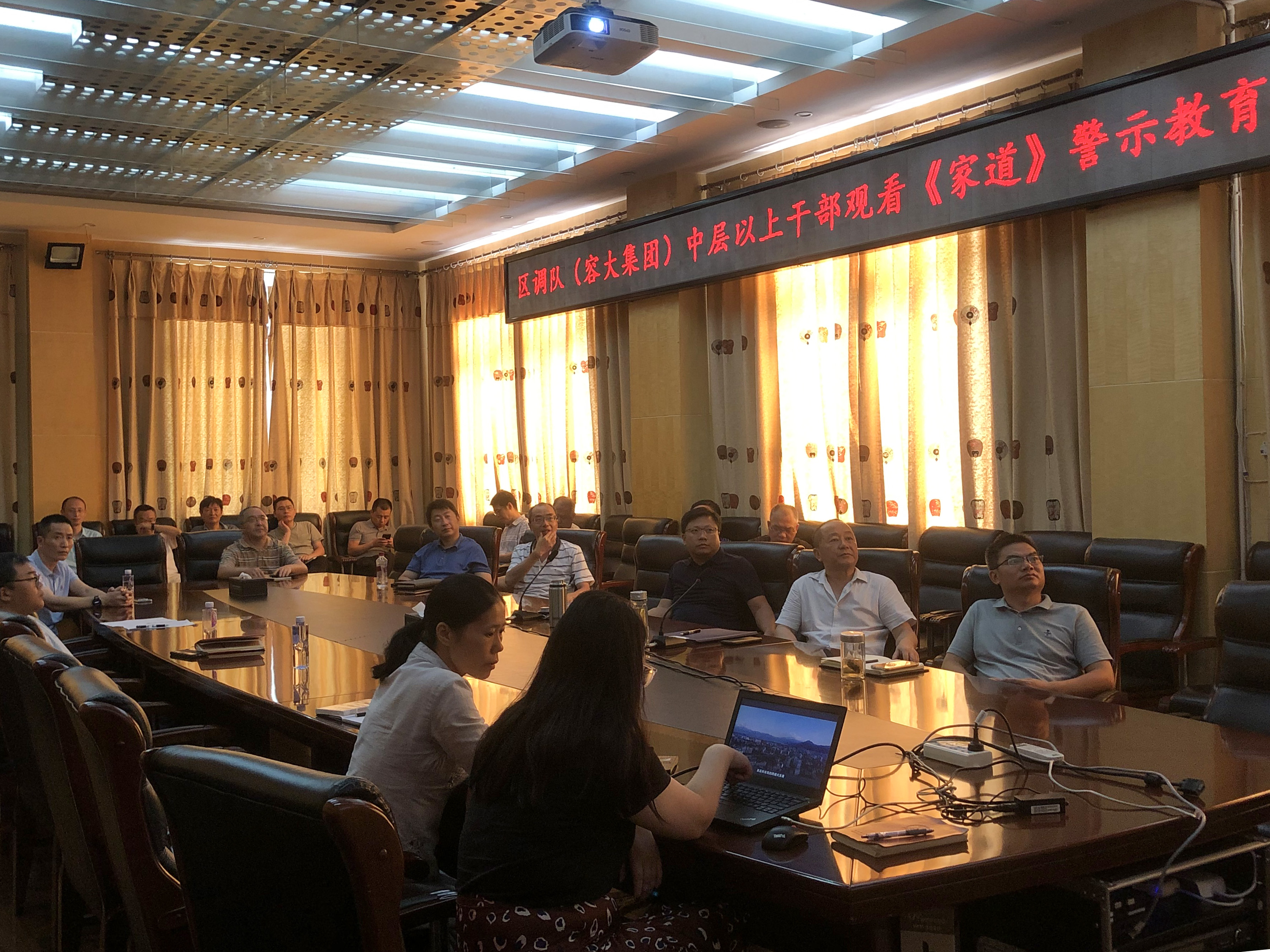 8月16日上午,区调队(容大集团)组织中层及以上干部观看警示教育片《家道》,常态化加强党风廉政教育,并开展集体廉政谈话。