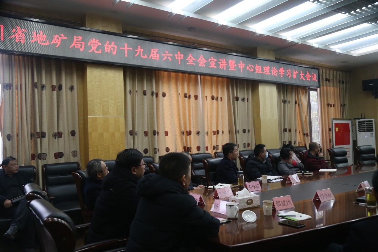 12月14日,四川省地矿局召开党的十九届六中全会宣讲暨中心组理论学习扩大会议,深入学习宣传贯彻党的十九届六中全会精神,贯彻落实中央、省委和局党委部署要求,持续推进党史学习教育纵深开展。主会场设置在局六楼一会议室,区调队设置分会场并组织中层及以上干部参加。会议由局党委书记、局长王建明主持。