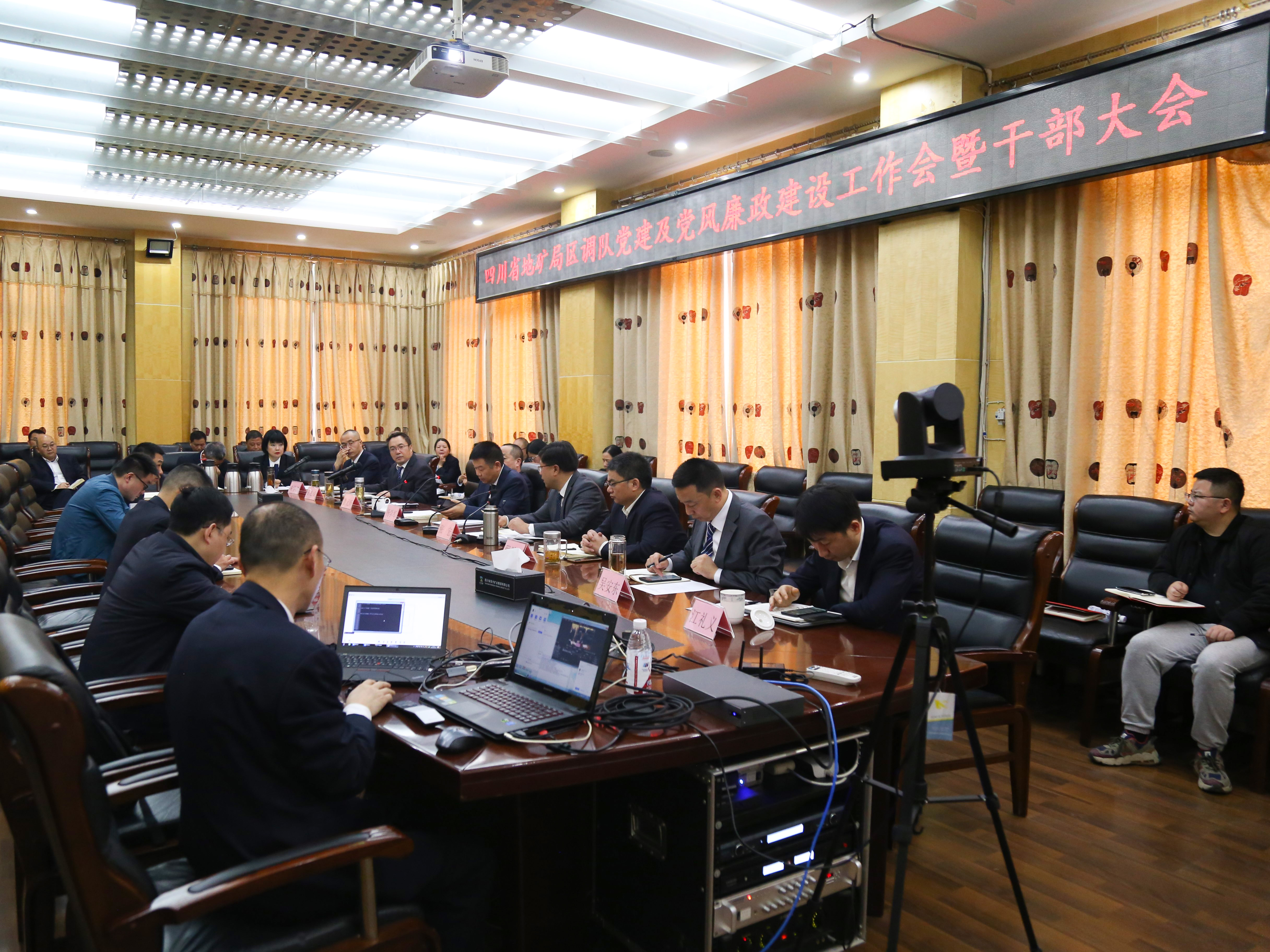 3月30日,为深入学习贯彻党的十九届六中全会、十九届中央纪委六次全会和习近平总书记重要讲话精神,贯彻落实局党委2022年度工作会、党建和党风廉政建设工作会、纪检工作会议及安全生产工作会精神,部署我队2022年相关工作任务,四川省地矿局区调队党建及党风廉政建设工作会暨干部大会在队二楼会议室召开。区调队领导班子、中层干部现场参会,四川黄金中层及以上干部以视频会议形式参会。会议由区调队党委书记张宏主持。
