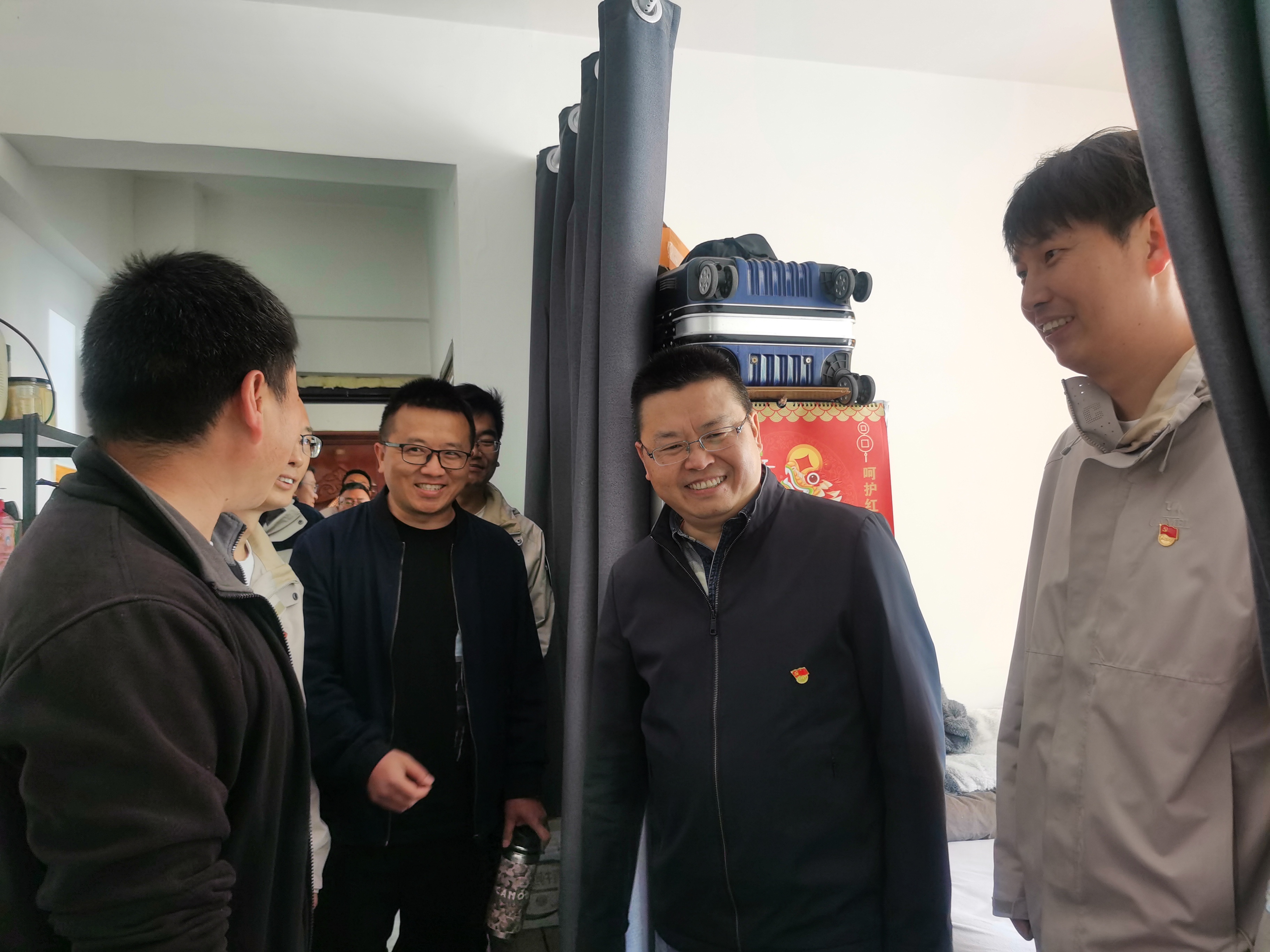 区调队党委书记杨更(右二)查看驻村工作队宿舍