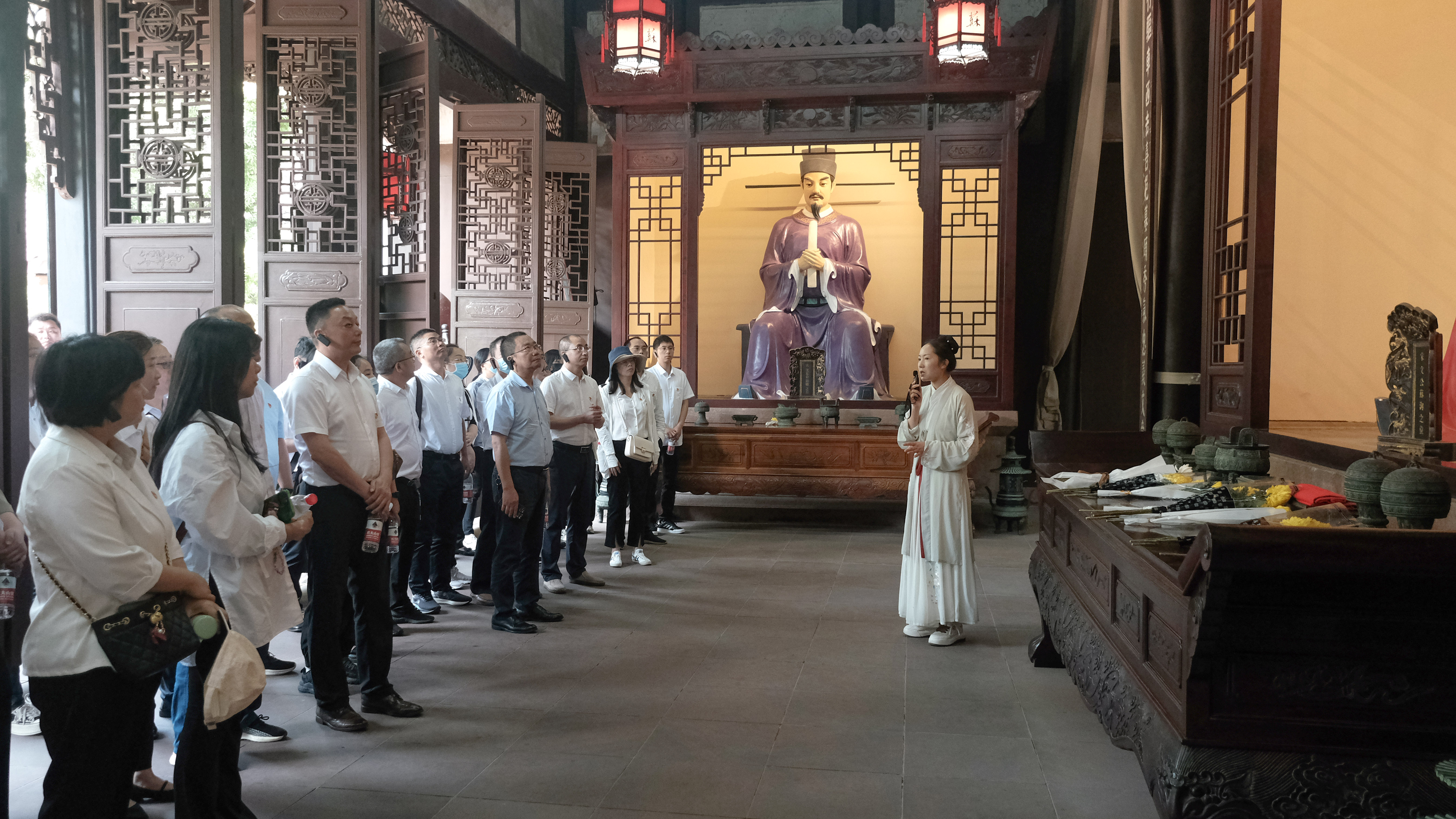 区调队一行首先来到三苏祠,三苏祠是北宋著名文学家苏洵、苏轼、苏辙的故居,明代洪武元年改宅为祠,祭祀三苏。2022年6月,习近平总书记来到这里,了解三苏生平、主要文学成就和家训家风,以及三苏祠历史沿革、东坡文化研究传承。